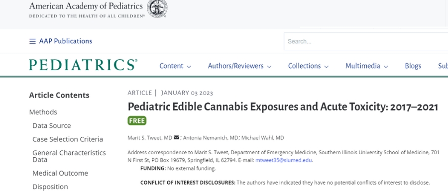 No início de 2022 informamos que as intoxicações por comestíves de maconha haviam crescido 1600% nos EUA. Nesta primeira semana de 2023 novamente o alerta chegou. Desta vez através de um estudo divulgado na American Academy of Pediatrics.