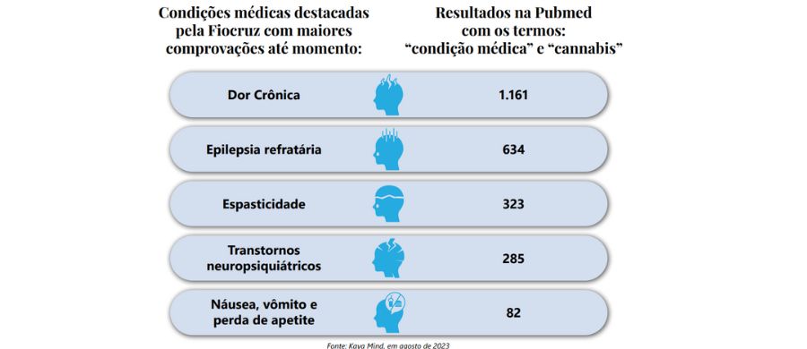 Além das condições, o material apresenta um compilado de estudos, instituições e estudiosos, que desenvolvem pesquisas científicas sobre cannabinoides no Brasil. Ainda neste panorama, o “Anuário da Cannabis medicinal” apresenta: