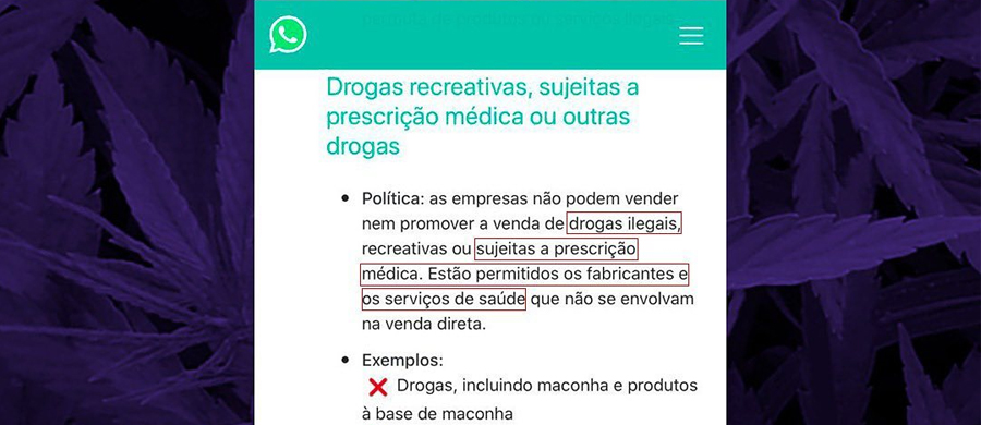 A associação de pacientes de Cannabis medicinal Apepi, do Rio de Janeiro, teve a conta comercial do WhatsApp, utilizada no atendimento dos mais de 500 associados, banida pelo Facebook, informou a entidade nesta quarta-feira (17). A rede social alegou suposta promoção ou venda de drogas ilegais, recreativas ou sujeitas a prescrição médica em mensagem enviada para a ONG.