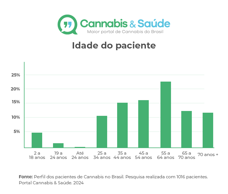 55 a 64 anos: Idade do paciente indica que Cannabis está se consolidando como um medicamento para pessoas com idade avançada no Brasil