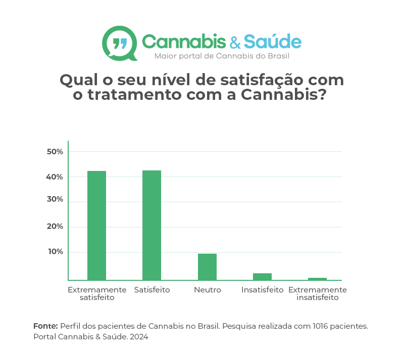 Entre os insights da pesquisa, chama atenção o alto nível de satisfação dos pacientes: 42,8% afirmaram estar extremamente satisfeitos, 42,6% satisfeitos, 9,7% neutros e 3,3% insatisfeitos e 1,5% extremamente insatisfeitos.
