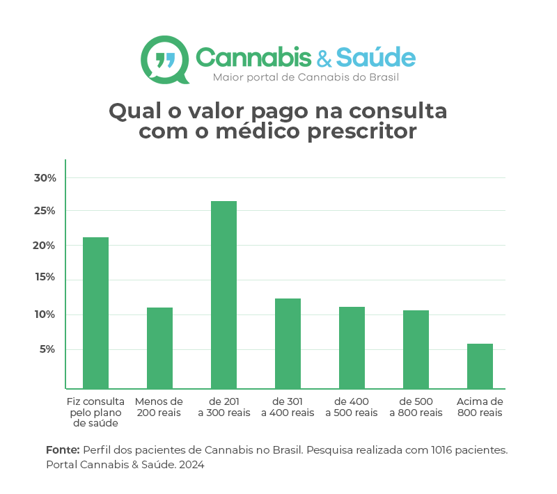 - 26,1% pagaram entre R$ 201 e R$ 300 na consulta em que os médicos prescreveram a Cannabis em seus tratamentos.