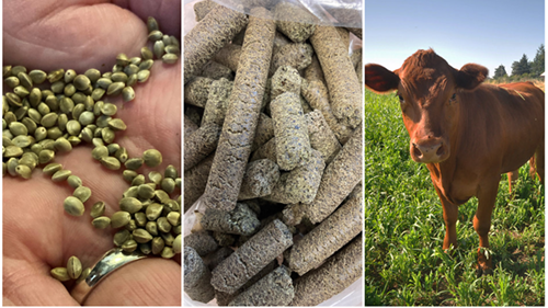 Do ponto de vista da segurança alimentar, a torta de cânhamo com baixo teor de canabinoides pode ser uma fonte adequada de proteína bruta e fibra na alimentação do gado, oferecendo aos produtores industriais de cânhamo um mercado potencial para este subproduto da extração do óleo de cânhamo.”