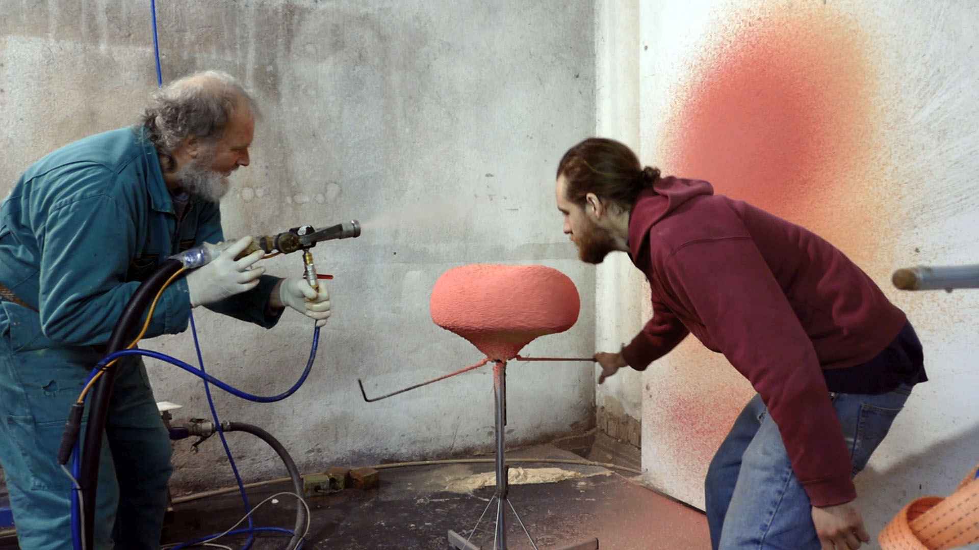 Norbert e Jakob. Para fabricar com Hempstone se utiliza um equipamento que se parece com spray