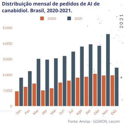 Segundo o 1º Boletim Informativo sobre Monitoramento Pós-Mercado de produtos e serviços sujeitos à vigilância sanitária aumentaram em 189% os pedidos de importação de produtos com canabidiol. O Boletim realizou um comparativo entre o ano de 2020 e 2021.