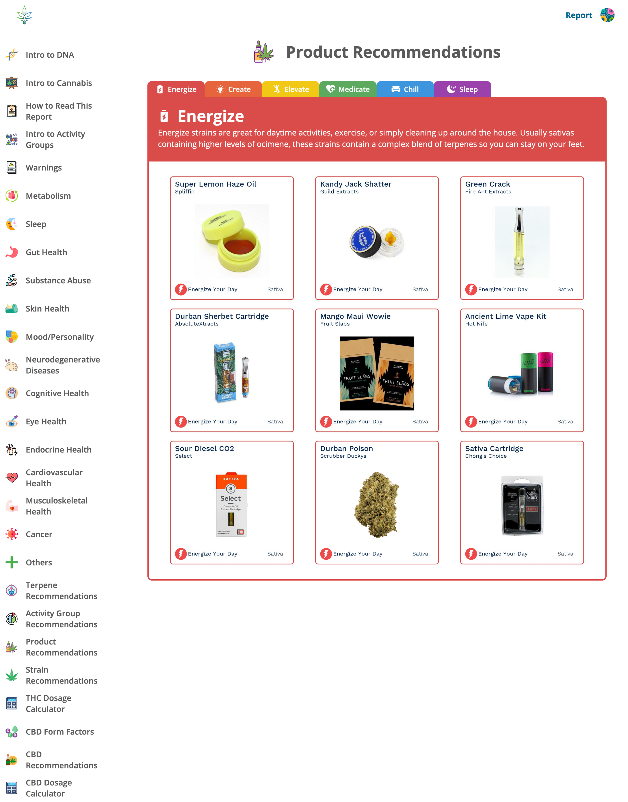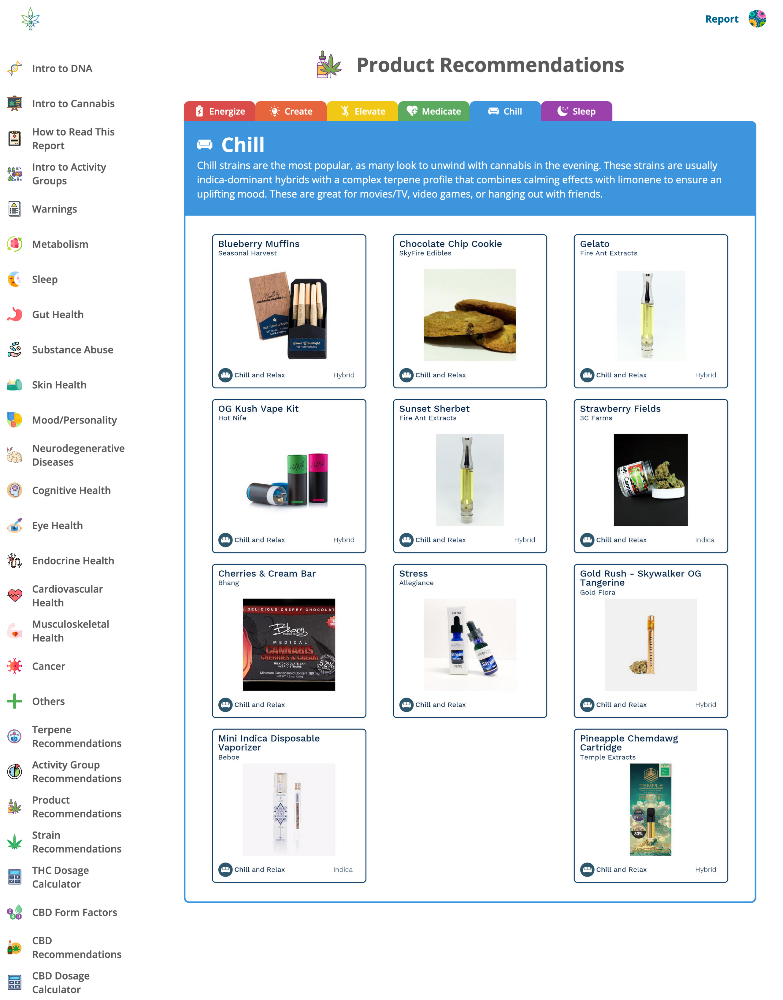 Produtos de Cannabis recomendados, com base no teste de DNA
