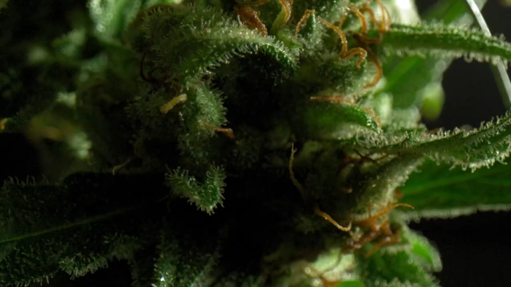 Flor de cannabis, os tricomas são mais espalhados pela superfície