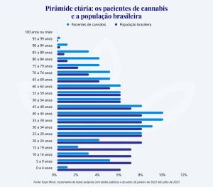O “Anuário da Cannabis medicinal no Brasil”, lançado em novembro de 2023 e apresentado pela Kaya Mind, mostra que a maioria dos pacientes que utilizam Cannabis medicinal está na faixa etária entre 35 e 50 anos, com uma média geral um pouco acima dos 45 anos.