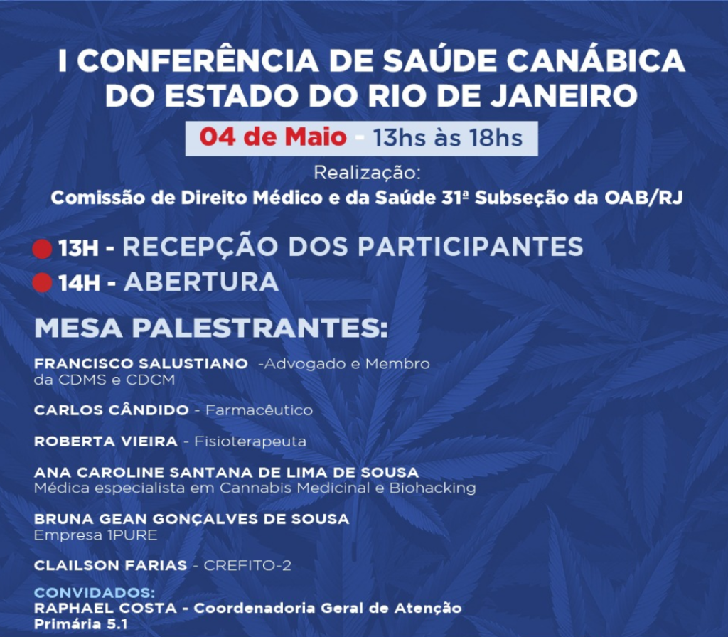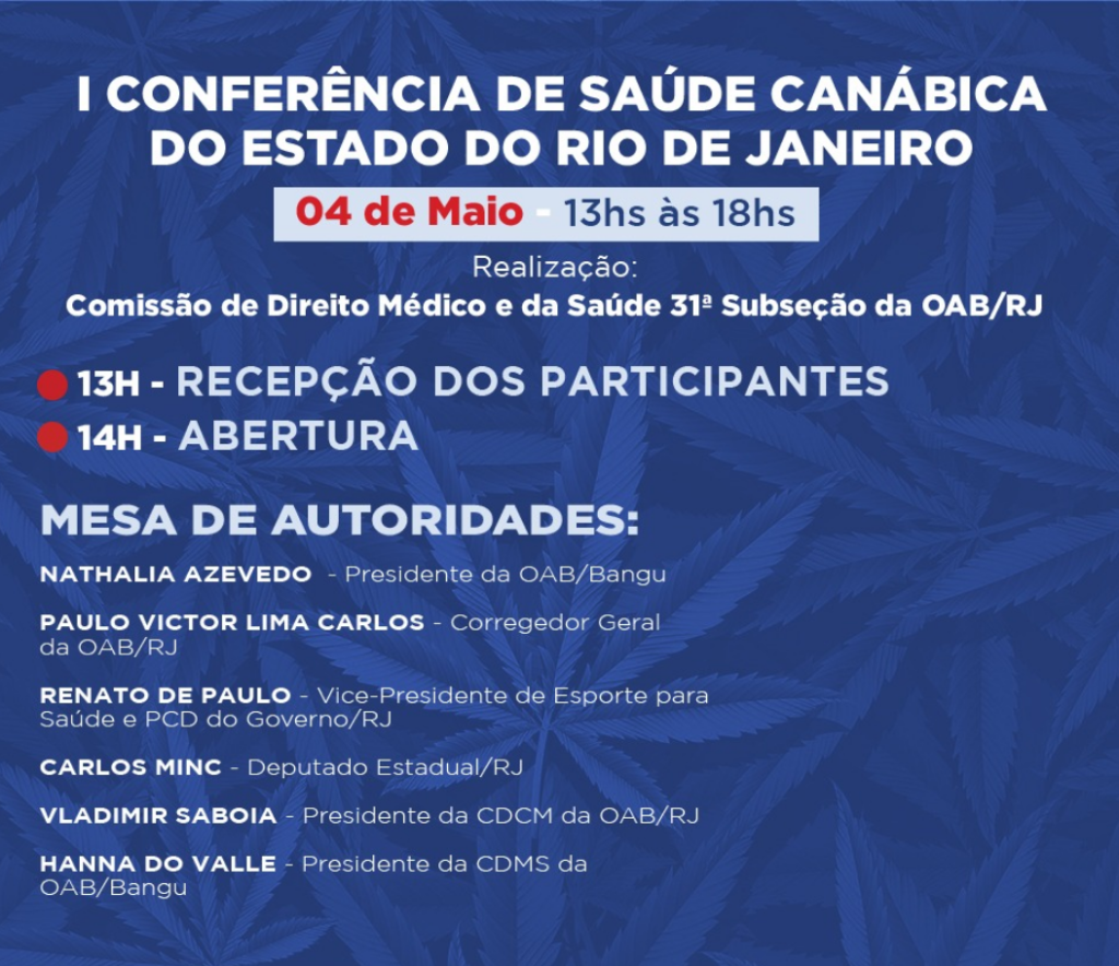 A Comissão de Direito Médico e da Saúde da 31ª Subseção (em Bangu) da Ordem dos Advogados do Brasil do Rio de Janeiro (OAB-RJ) vai realizar a I Conferência de Saúde Canábica do Estado do Rio de Janeiro, no próximo dia 4 de maio, para debater o uso medicinal da Cannabis.