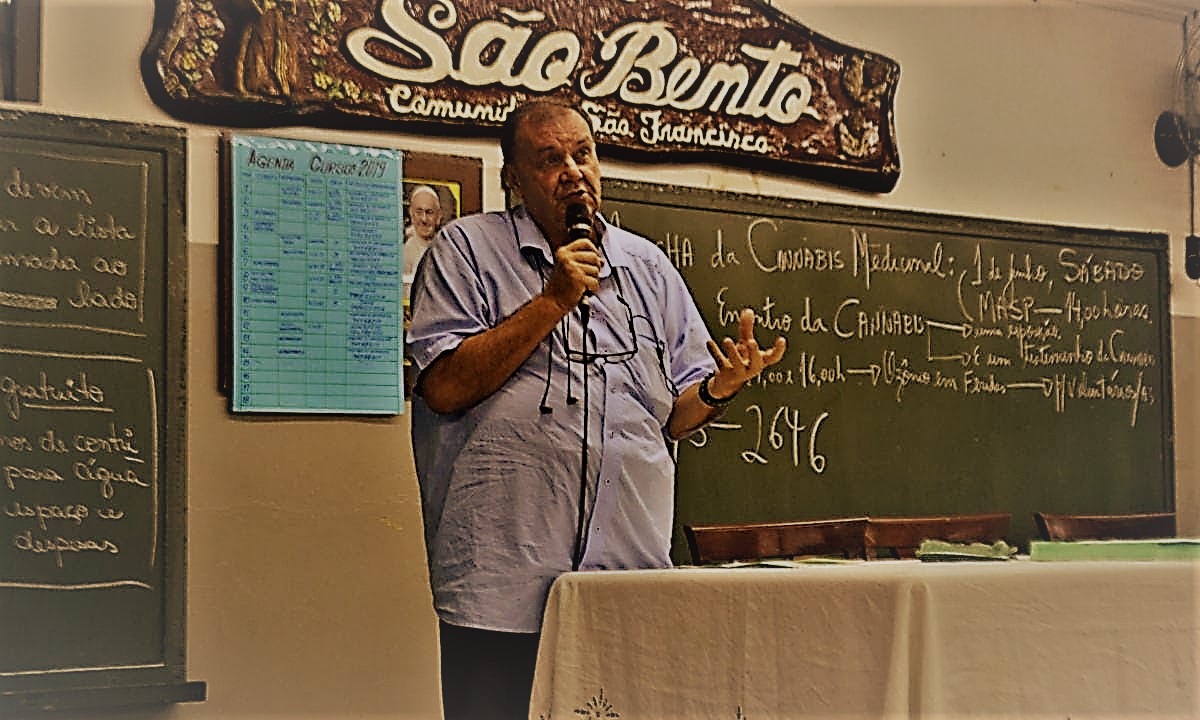 Padre Ticão em uma das reuniões do curso de Cannabis medicinal | crédito: Gabi Dainezi