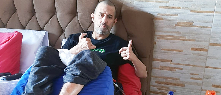 Além de correr contra o tempo, o Marcos também precisa de um feito homérico: juntar cerca de R$ 100 mil para amputar a perna esquerda e a cirurgia de quadril que pode devolver a locomoção, ainda que de muletas.